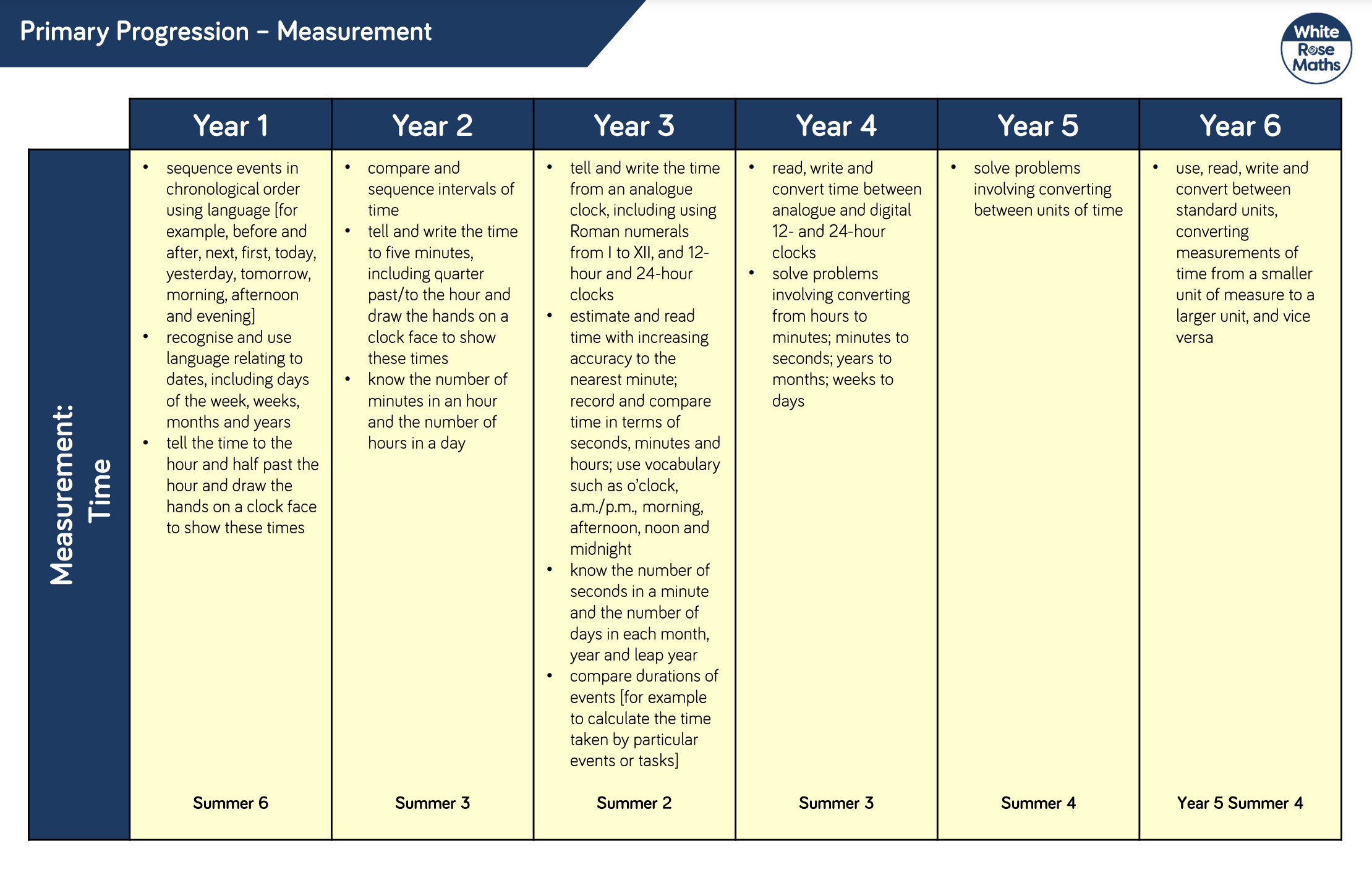 Here are some online resources to support your child with learning to tell the time. The image below shows how children are expected to progress in this skill as they move through school. We would be grateful if you could focus on this objective throughout autumn term.